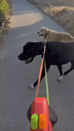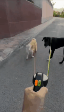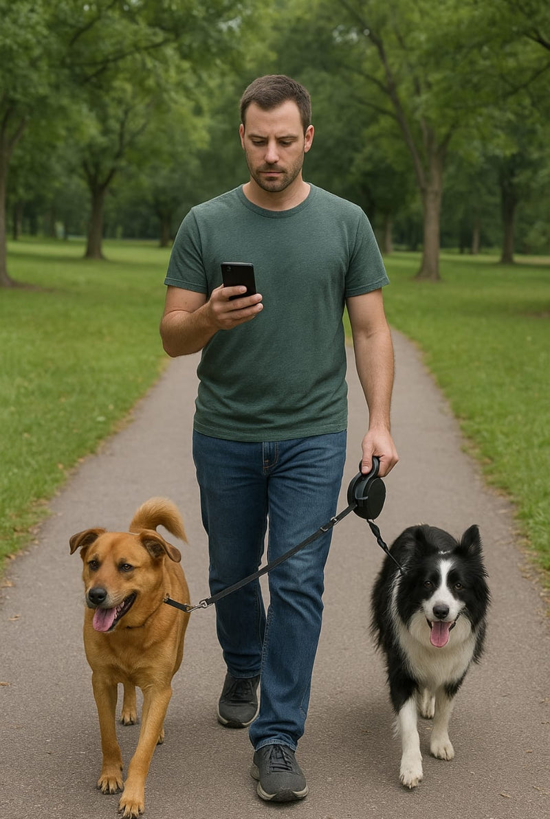 שני הכלבים זזים בחופשיות, הרצועות מסתובבות בלי להסתבך, ואתה נשאר בשליטה מלאה.